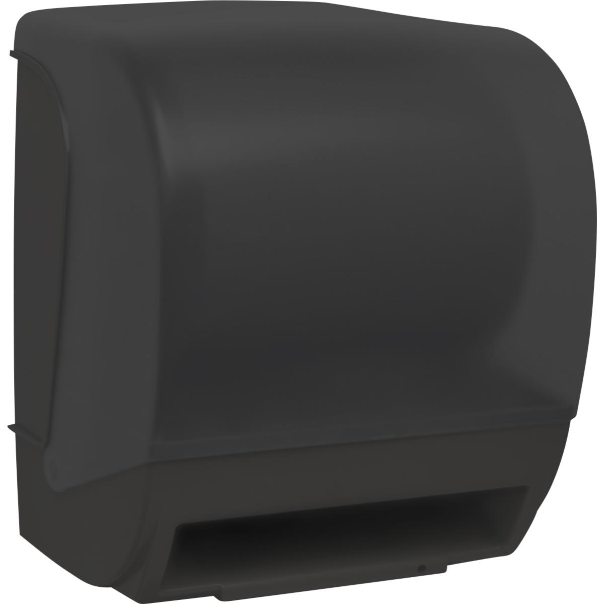 Диспенсер для рулонных бумажных полотенец выполнен из белого ABS пластика и работает от 4 батареек класса D.