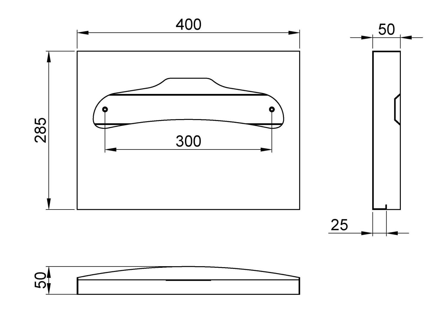 Настенный диспенсер для туалетных накладок сделан из нержавеющей стали AISI 304. Данный диспенсер универсальный и может быть использован с любыми накладками сложения ½ (или без сложения). Емкость 200-250 шт.
