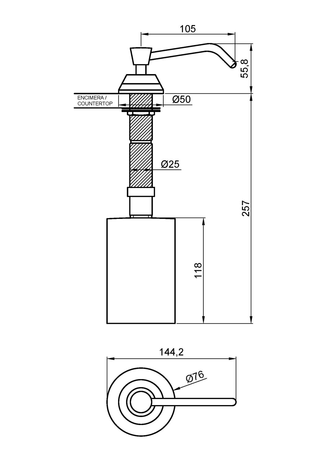 Диспенсер встраиваемый в раковину или столешницу для мыла 500 мл из нержавеющей стали.