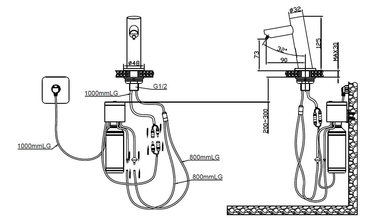 Автоматический дозатор мыла для установки на столешницу. Располагается под небольшим углом над раковиной. Имеет бак для мыла 1000 мл. Оснащен классическим сенсором с фотоэлементом и приводится в работу от батареек ААА.