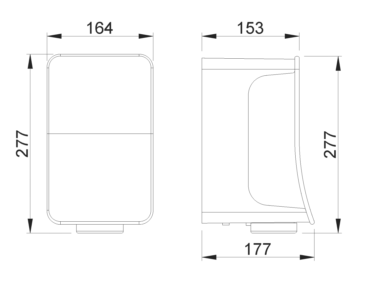 277 h x 164 w x 177 d (мм)