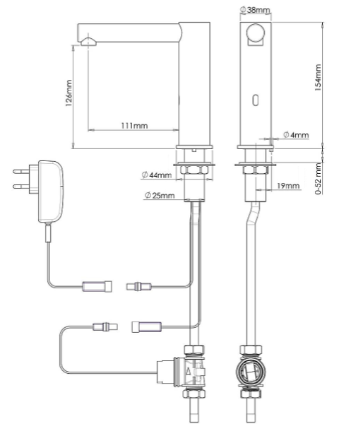 Электронный кран для установки на столешницы. Прочный и устойчивый к ржавчине и коррозии. Подходит для общественных мест.