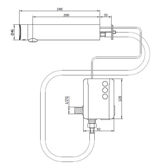 Кран сенсорный для настенного монтажа изготовлен их хромированной латуни и оборудован лазерным сенсором. В комплекте с устройством поставляются подводки для воды 1/2. Питание от батареек или от сети.