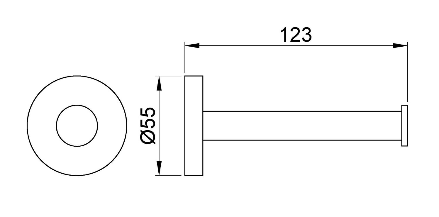 Держатель туалетной бумаги Nofer из нержавеющей стали AISI 304, матовая отделка. Размеры: Ø55 высота x Ø55 ширина x 123 глубина (мм).