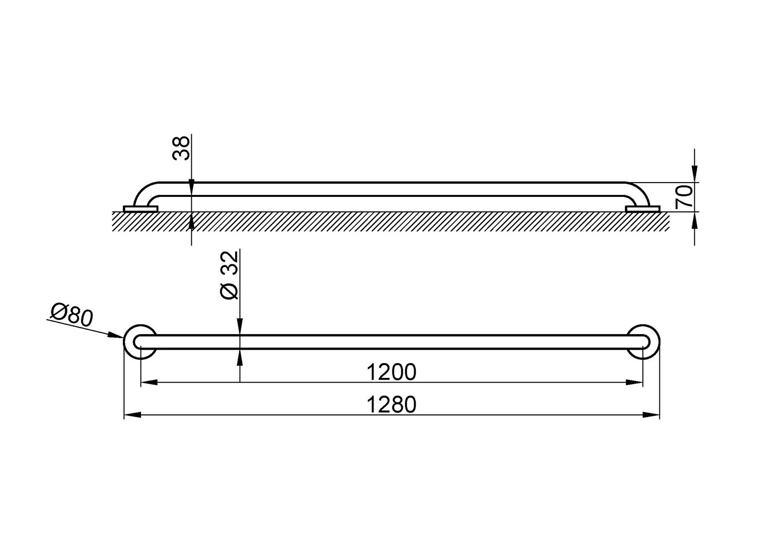 Поручень прямой опорный для крепления на стену, глянцевый. Подходит для поддержки в раковинах, туалетах, душах и ваннах. Предназначен для людей с ограниченными возможностями. Изготовлен из нержавеющей стали AISI 304. Две опорные точки. Длина (между центрами опор): 1200 мм. Диаметр Ø 32 мм, толщина 1,5 мм. 38 мм от стены. Рекомендуемая высота установки 70-75 см от пола. Крепления включены в комплект.