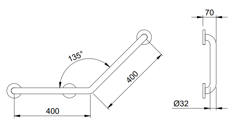 Поручень настенный под углом 135. 400х400 Nofer 15161.B из нержавеющей стали матовый.