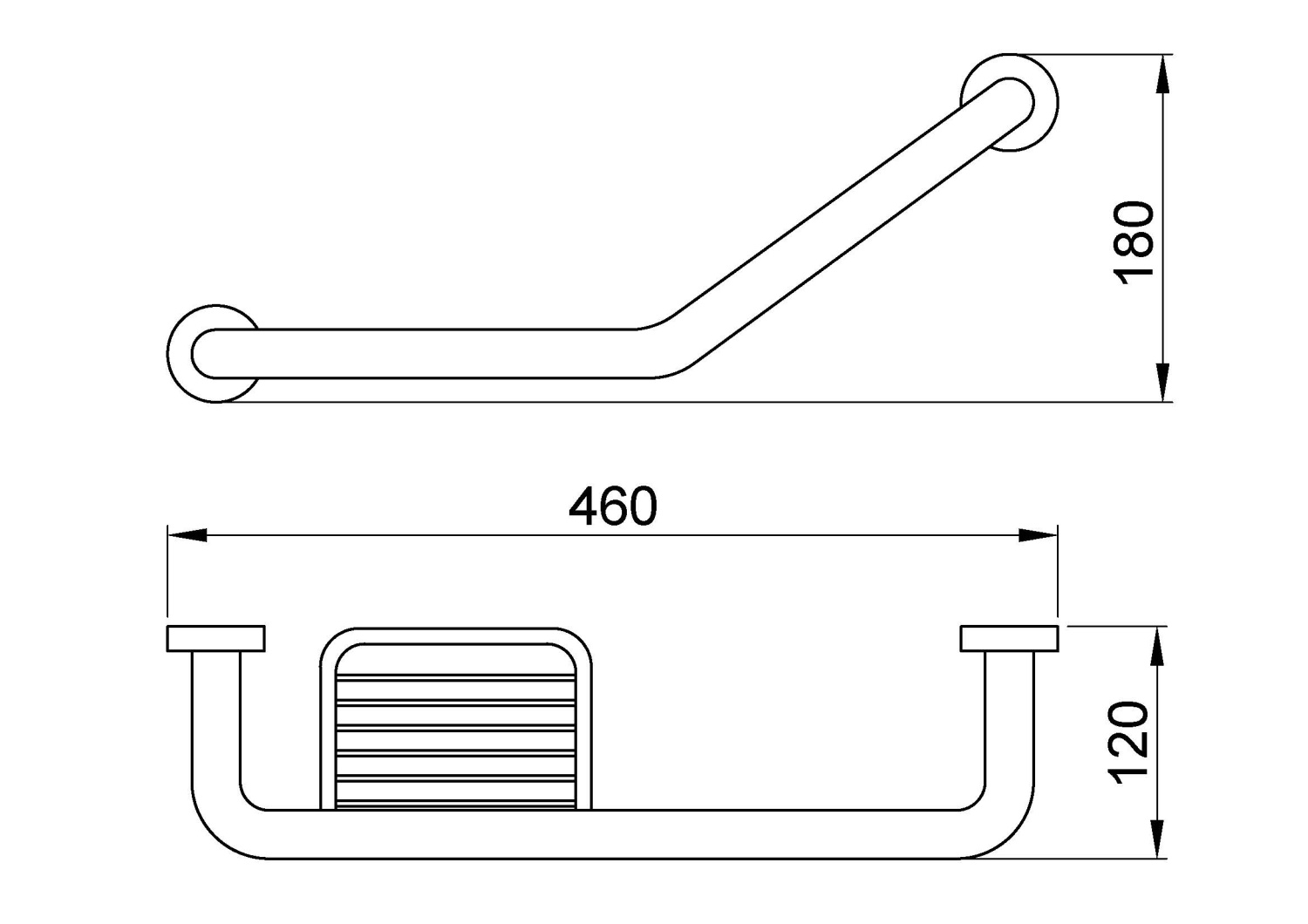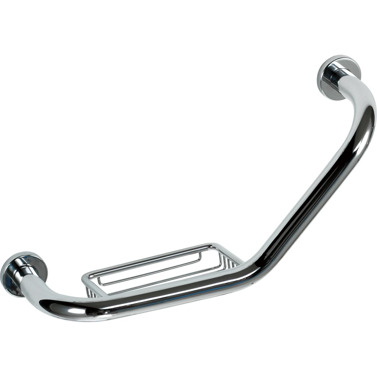 Хромированная латунная угловая опорная планка с прямоугольной решетчатой мыльницей. Долговечность и коррозионная стойкость. Глянцевая отделка. Доступно также без решетчатой мыльницы (Nofer 16354. B).
