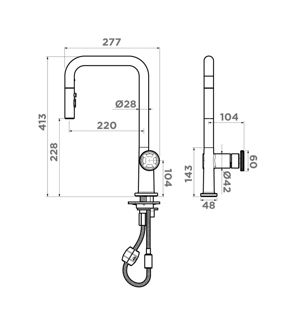 Omoikiri Arita-SB GB Смеситель для кухни с гибким изливом, цвет: графит 4994355 и другие сантехнические изделия бренда характеризует надежность, высокое качество и продолжительный срок службы. Изделие в стилистике лофт впечатляюще будет смотреться в различных цветовых решениях помещения.
