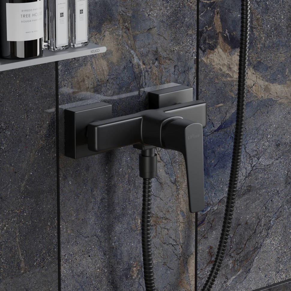Paini Bari Смеситель для душа на 2 отверстия, цвет: черный матовый RTYO511 и другие сантехнические изделия бренда характеризует надежность, высокое качество и продолжительный срок службы. Изделие в стилистике минимализм впечатляюще будет смотреться в различных цветовых решениях помещения.