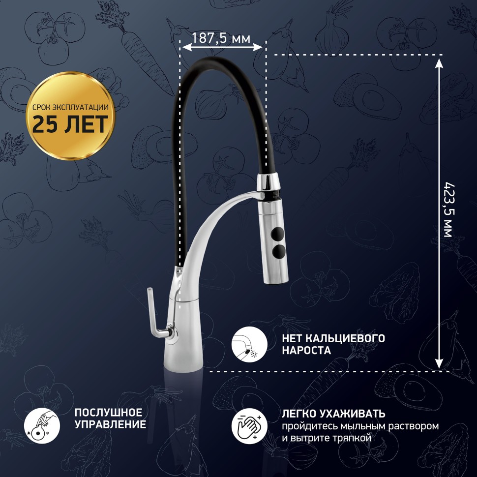 Закажите Paini Barolo Смеситель для кухни с гибким изливом, высота излива 18,6 см, цвет: черный матовый A9CR557LMKM от производителя Paini, коллекция Barolo в салоне европейской сантехники Дизайн Сантехники с быстрой доставкой по Москве. Представлены подробные характеристики и фотографии, которые позволят сделать правильный выбор и заказать товар.