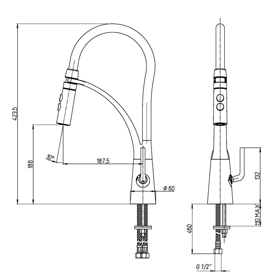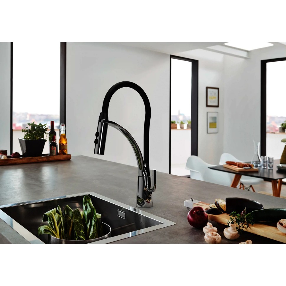 Paini Barolo Смеситель для кухни с гибким изливом, высота излива 18,6 см, цвет: черный матовый A9CR557LMKM и другие сантехнические изделия бренда характеризует надежность, высокое качество и продолжительный срок службы. Изделие в стилистике минимализм впечатляюще будет смотреться в различных цветовых решениях помещения.