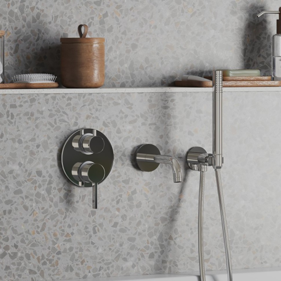 Paini Brera Смеситель для ванны встраиваемый, 2 потребителя, с внутренней частью, цвет: хром 74CR6911 и другие сантехнические изделия бренда характеризует надежность, высокое качество и продолжительный срок службы. Изделие в стилистике минимализм впечатляюще будет смотреться в различных цветовых решениях помещения.