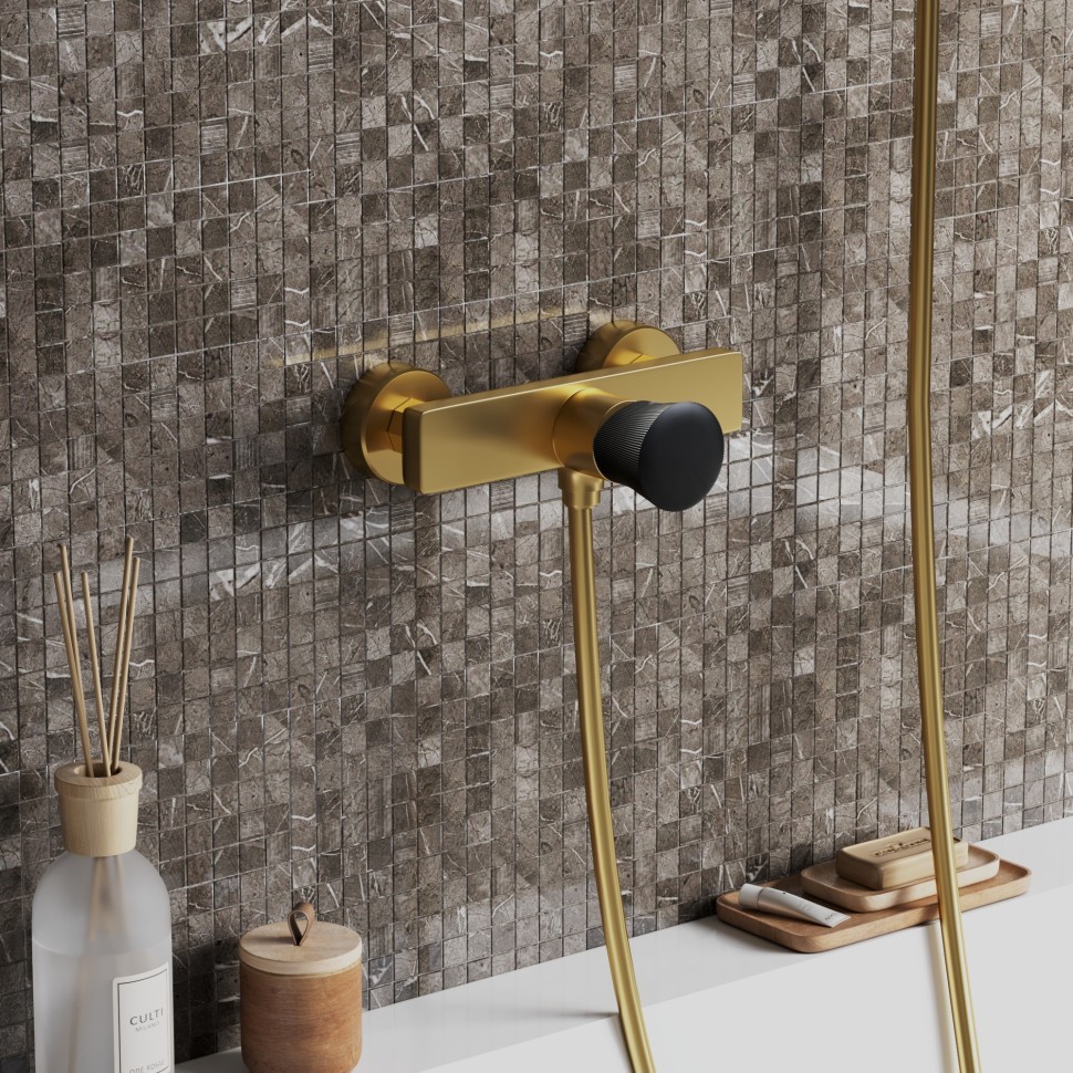Paini Domus Смеситель для душа на 2 отверстия без излива, цвет: золото брашированное 18PJ511PZ и другие сантехнические изделия бренда характеризует надежность, высокое качество и продолжительный срок службы. Изделие в стилистике минимализм впечатляюще будет смотреться в различных цветовых решениях помещения.