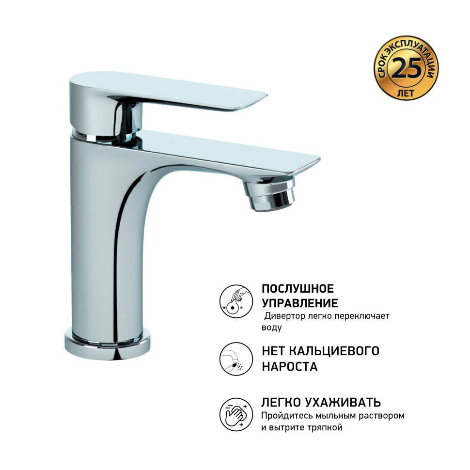 Paini Garda Смеситель для раковины, с донным клапаном, высота излива 8,8 см, цвет: хром 76CR211 и другие сантехнические изделия бренда характеризует надежность, высокое качество и продолжительный срок службы. Изделие в стилистике минимализм впечатляюще будет смотреться в различных цветовых решениях помещения.