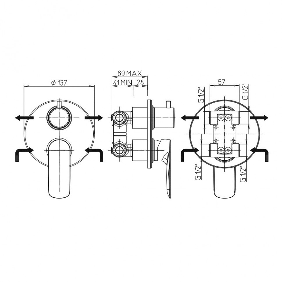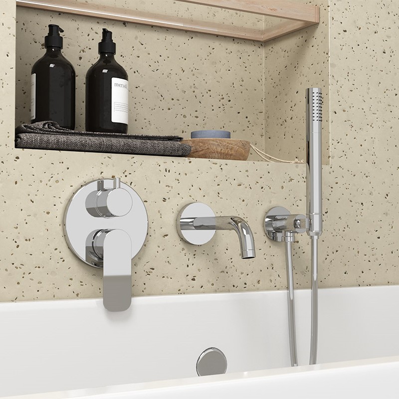 Paini Nove Смеситель для ванны встраиваемый на 2 потребителя, с внутренней частью, цвет: хром 09CR6911 и другие сантехнические изделия бренда характеризует надежность, высокое качество и продолжительный срок службы. Изделие в стилистике минимализм впечатляюще будет смотреться в различных цветовых решениях помещения.