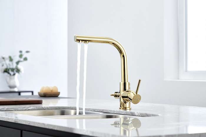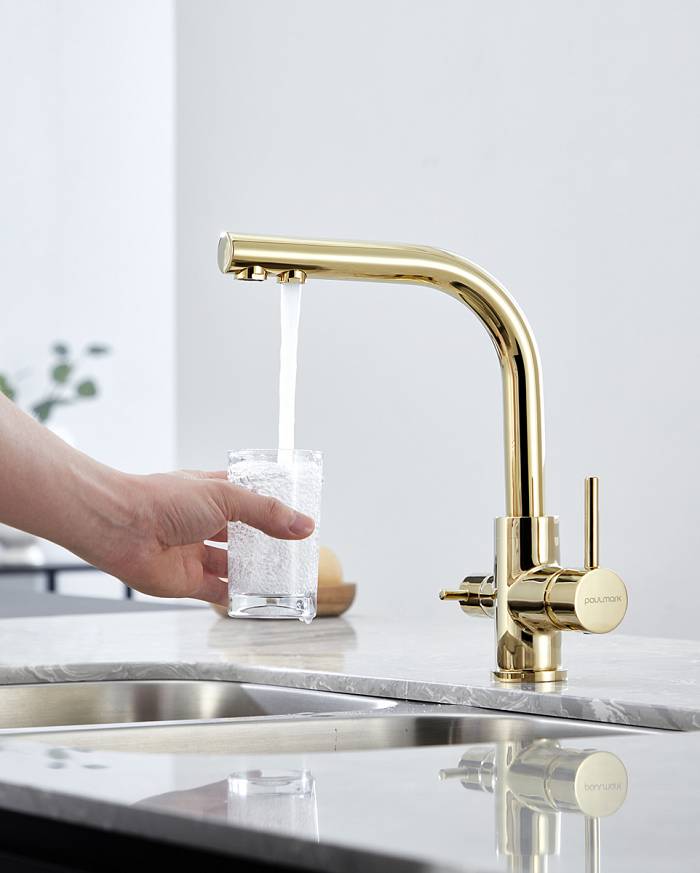 Paulmark Essen Смеситель для кухни с гибким изливом, цвет: золото Es213011-G и другие сантехнические изделия бренда характеризует надежность, высокое качество и продолжительный срок службы. Изделие в стилистике hi-tech впечатляюще будет смотреться в различных цветовых решениях помещения.
