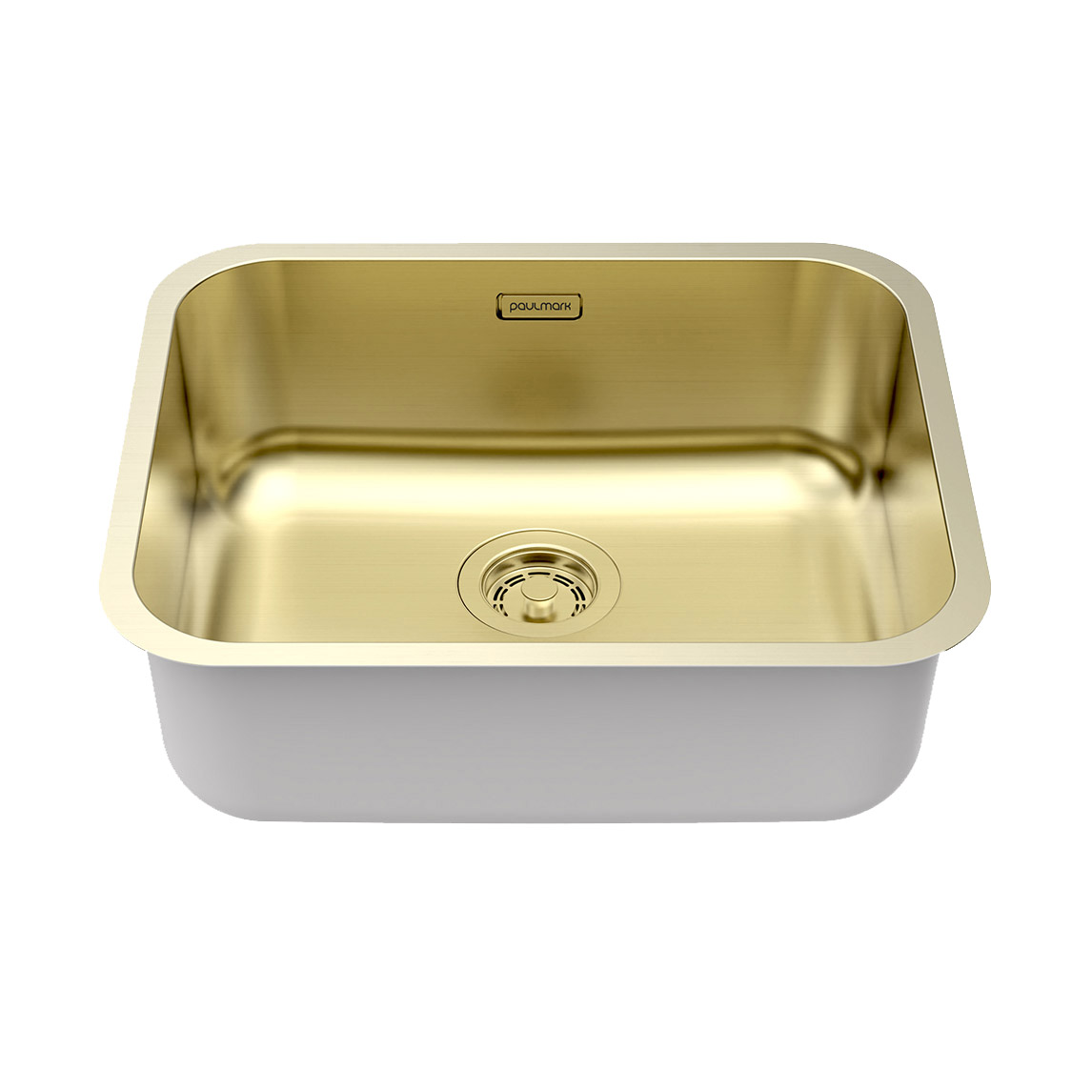 Paulmark Vello Кухонная мойка нержавеющая сталь 53,3х43,3 см, цвет: светлое золото VE53-LG и другие сантехнические изделия бренда характеризует надежность, высокое качество и продолжительный срок службы. Изделие в стилистике минимализм впечатляюще будет смотреться в различных цветовых решениях помещения.