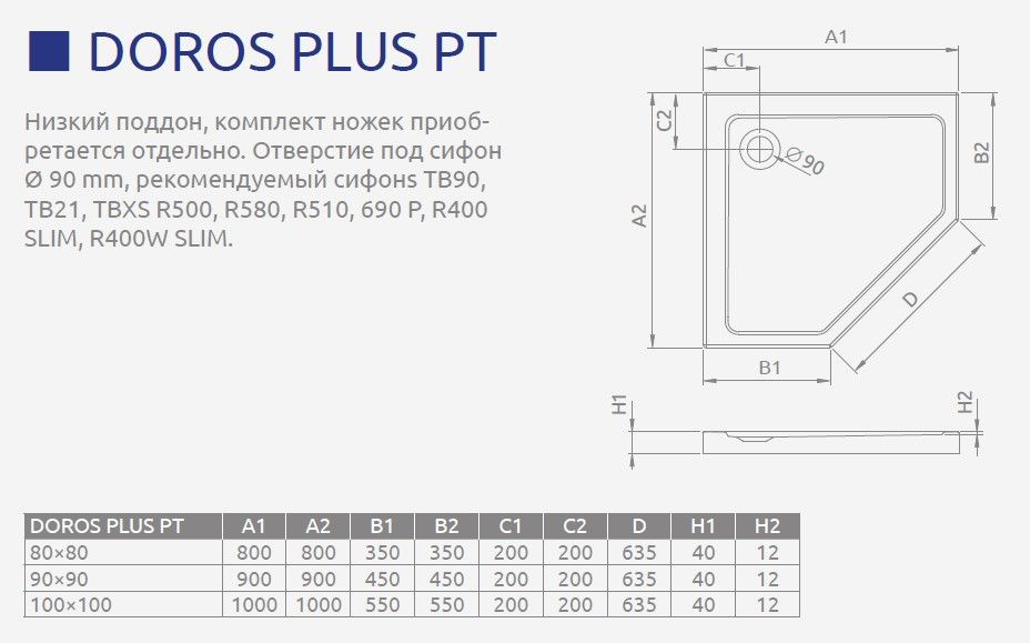 Radaway Doros Plus PT Поддон для душа из акрила, 90х90х4h см, цвет: белый глянцевый SDRPTP9090-01 и другие сантехнические изделия бренда характеризует надежность, высокое качество и продолжительный срок службы. Изделие в стилистике минимализм впечатляюще будет смотреться в различных цветовых решениях помещения.