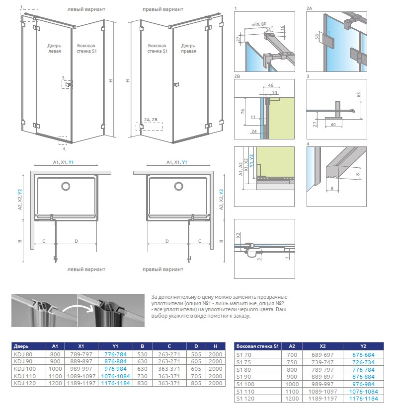 Radaway Essenza Pro KDJ Боковая стенка, прозрачная 6 мм, Easy Clean 100х200h см 10098100-01-01