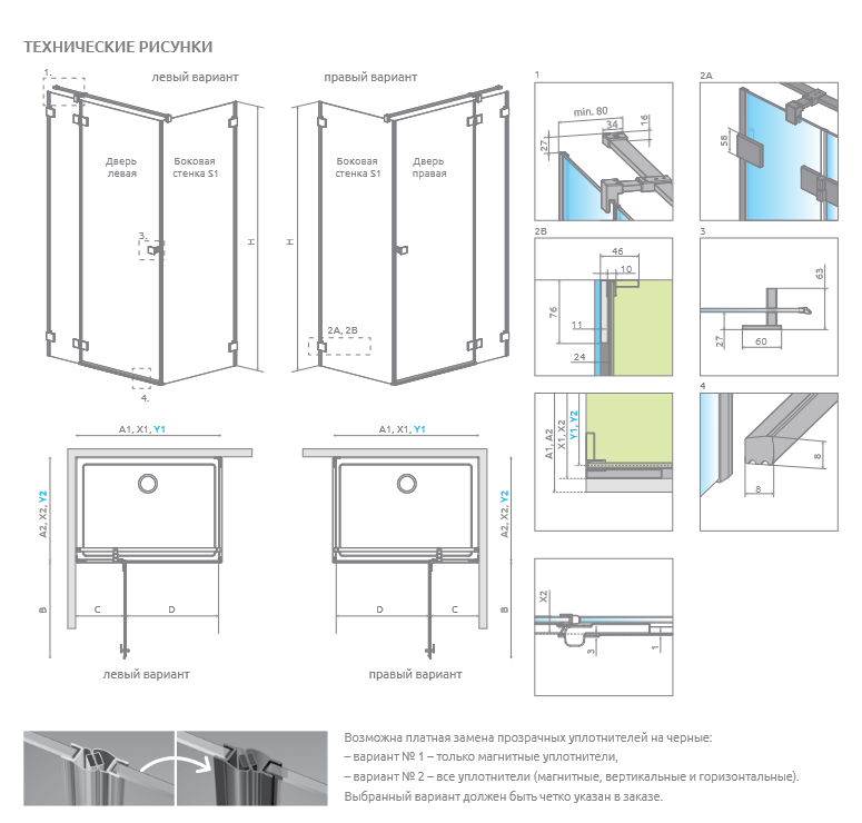 Radaway Essenza Pro KDJ Душевая дверь, левая, прозрачная 6 мм, Easy Clean 80х200h см, цвет: black 10097080-54-01L