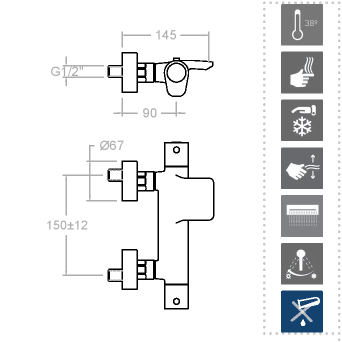 Ramonsoler Alexia Термостатический смеситель настенный с каскадным изливом, цвет: хром 363901S и другие сантехнические изделия бренда характеризует надежность, высокое качество и продолжительный срок службы. Изделие в стилистике минимализм впечатляюще будет смотреться в различных цветовых решениях помещения.