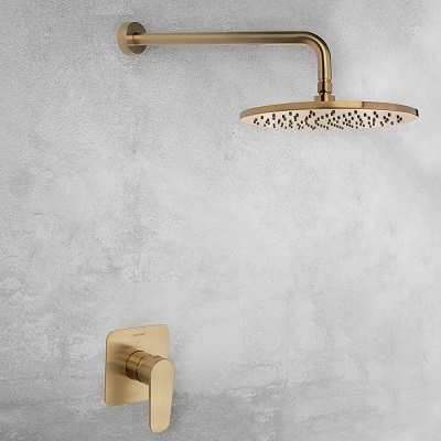 Ramonsoler Hidroterapia Лейка тропического душа из нержавеющей стали, цвет: золото брашированное RM250OC и другие сантехнические изделия бренда характеризует надежность, высокое качество и продолжительный срок службы. Изделие в стилистике лофт впечатляюще будет смотреться в различных цветовых решениях помещения.