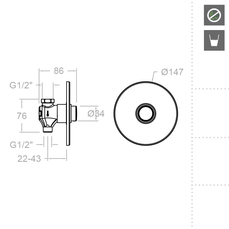 Ramonsoler Solestop Встраиваемый порционный кран, цвет: хром 745503 и другие сантехнические изделия бренда характеризует надежность, высокое качество и продолжительный срок службы. Изделие в стилистике минимализм впечатляюще будет смотреться в различных цветовых решениях помещения.
