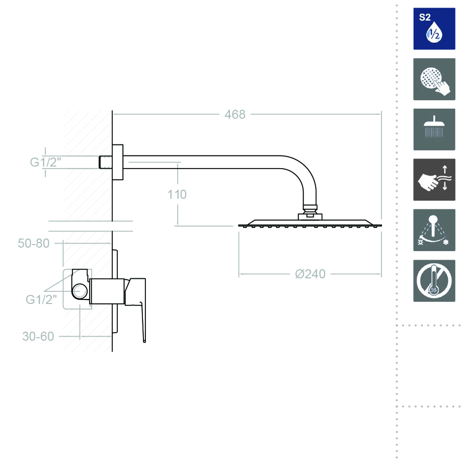 Ramonsoler Titanium Душевой комплект встраиваемый с тропическим душем, цвет: хром K1818013 и другие сантехнические изделия бренда характеризует надежность, высокое качество и продолжительный срок службы. Изделие в стилистике минимализм впечатляюще будет смотреться в различных цветовых решениях помещения.