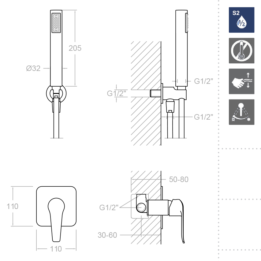 Ramonsoler Ypsilon Plus Душевой комплект встраиваемый, цвет: хром K6418011 и другие сантехнические изделия бренда характеризует надежность, высокое качество и продолжительный срок службы. Изделие в стилистике минимализм впечатляюще будет смотреться в различных цветовых решениях помещения.