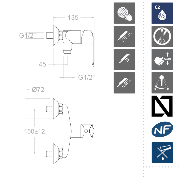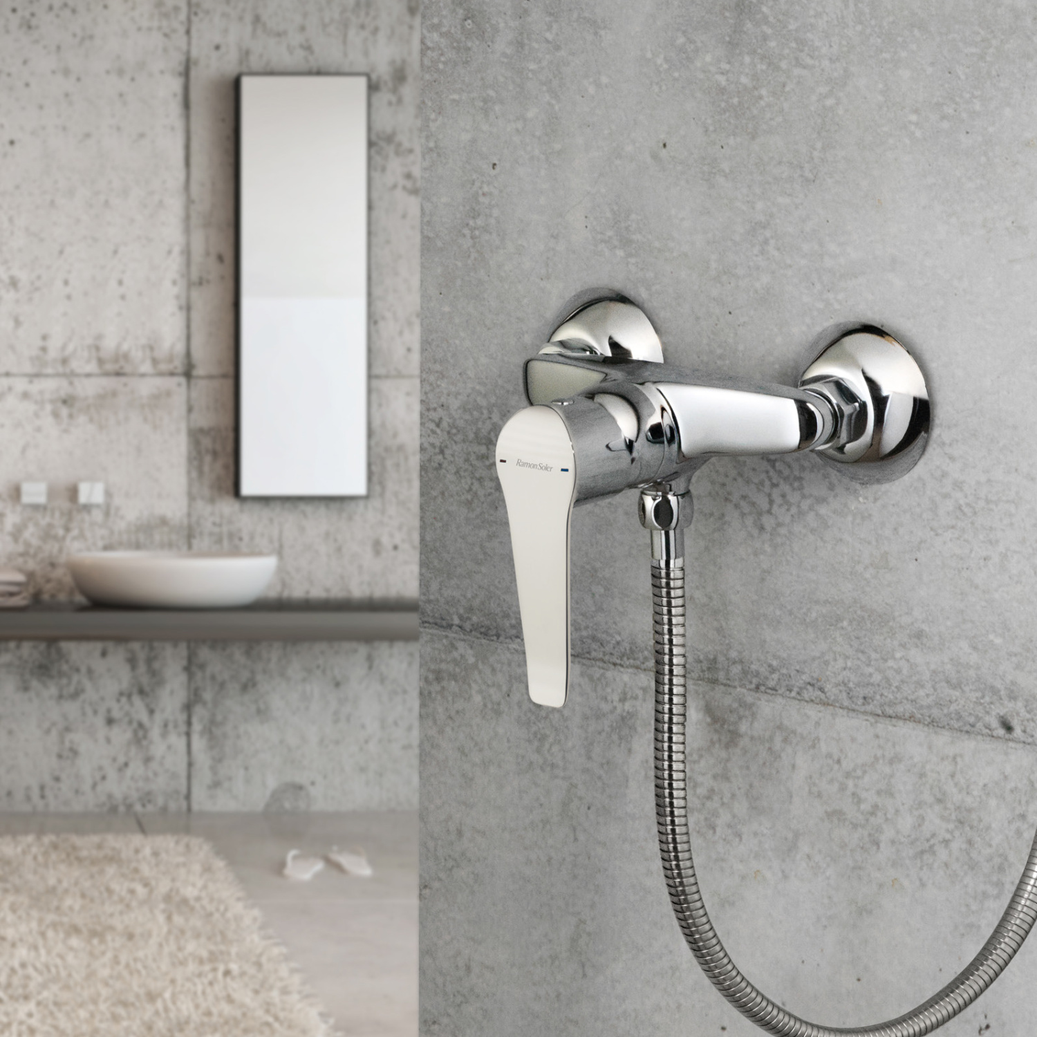 Ramonsoler Ypsilon Plus Термостатический смеситель настенный с душем, цвет: хром 6408T3 и другие сантехнические изделия бренда характеризует надежность, высокое качество и продолжительный срок службы. Изделие в стилистике минимализм впечатляюще будет смотреться в различных цветовых решениях помещения.