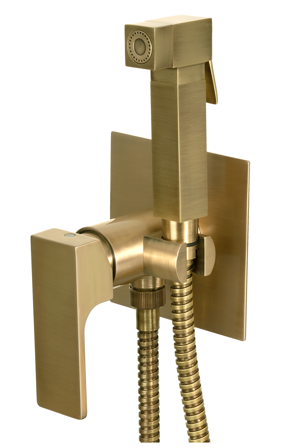 Remer Absolute Гигиенический душ со смесителем, шланг, с встраиваемой частью, цвет: vecchio ottone AU65VO и другие сантехнические изделия бренда характеризует надежность, высокое качество и продолжительный срок службы. Изделие в стилистике минимализм впечатляюще будет смотреться в различных цветовых решениях помещения.