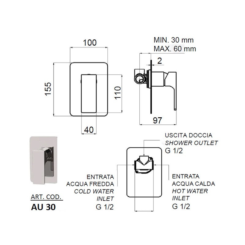 Смеситель для душа Remer Absolute AU30CFP - это стильное и современное решение для вашей ванной комнаты. Изготовленный из качественной графитовой брашированной латуни, этот смеситель имеет прямоугольную форму, которая подчеркнет современный дизайн помещения. Он предназначен для установки на стену (встраиваемый) и поставляется с рычажным керамическим картриджем. Гарантия на этот продукт составляет 5 лет. Продукт изготовлен в Италии, что гарантирует высочайшее качество и стиль. В комплекте с смесителем поставляются все необходимые элементы для монтажа.