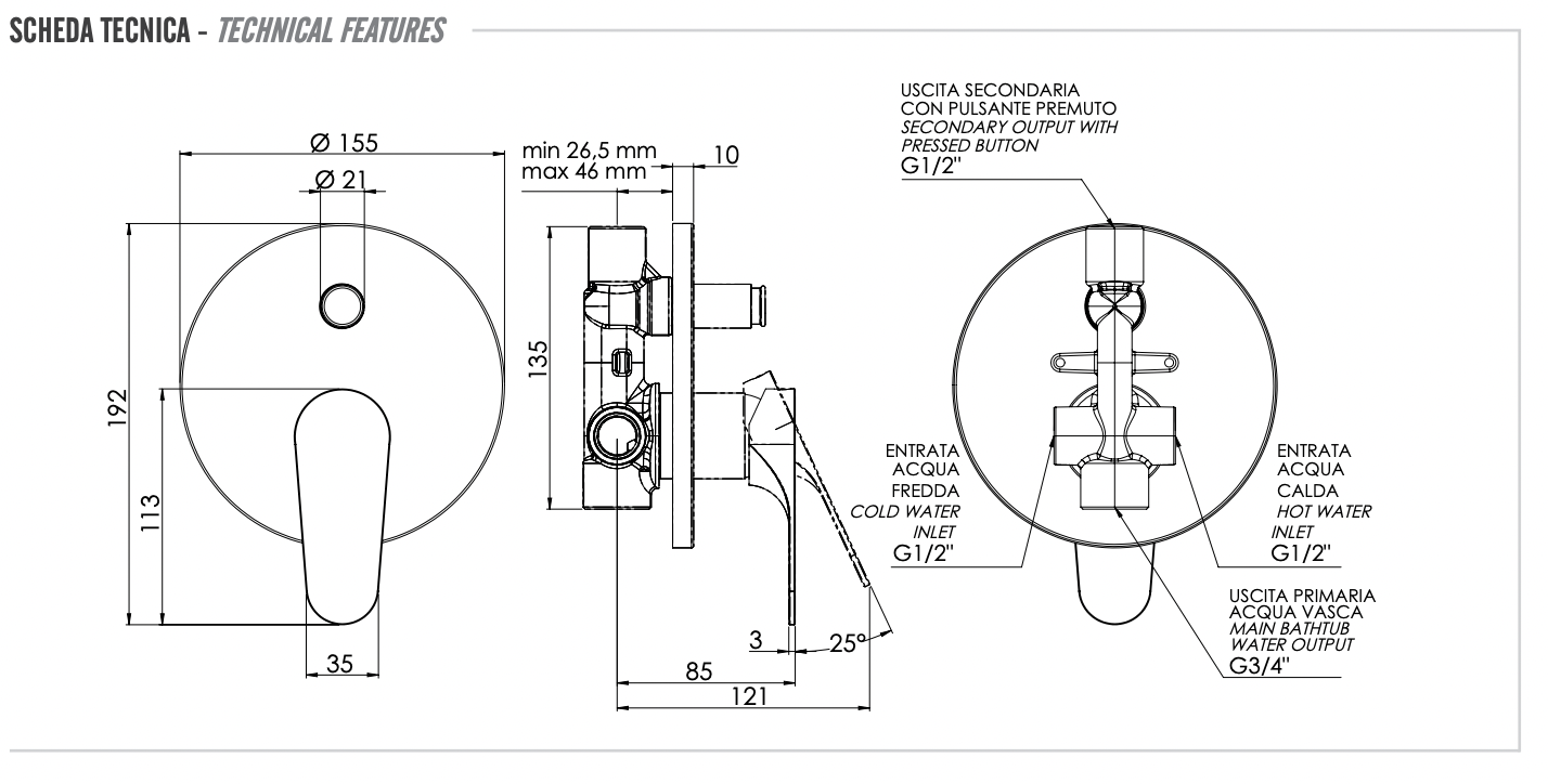 Remer Class Line Смеситель для ванны встраиваемый, 2 потребителя, с встраиваемой частью, цвет: cromo L09 и другие сантехнические изделия бренда характеризует надежность, высокое качество и продолжительный срок службы. Изделие в стилистике неоклассика впечатляюще будет смотреться в различных цветовых решениях помещения.