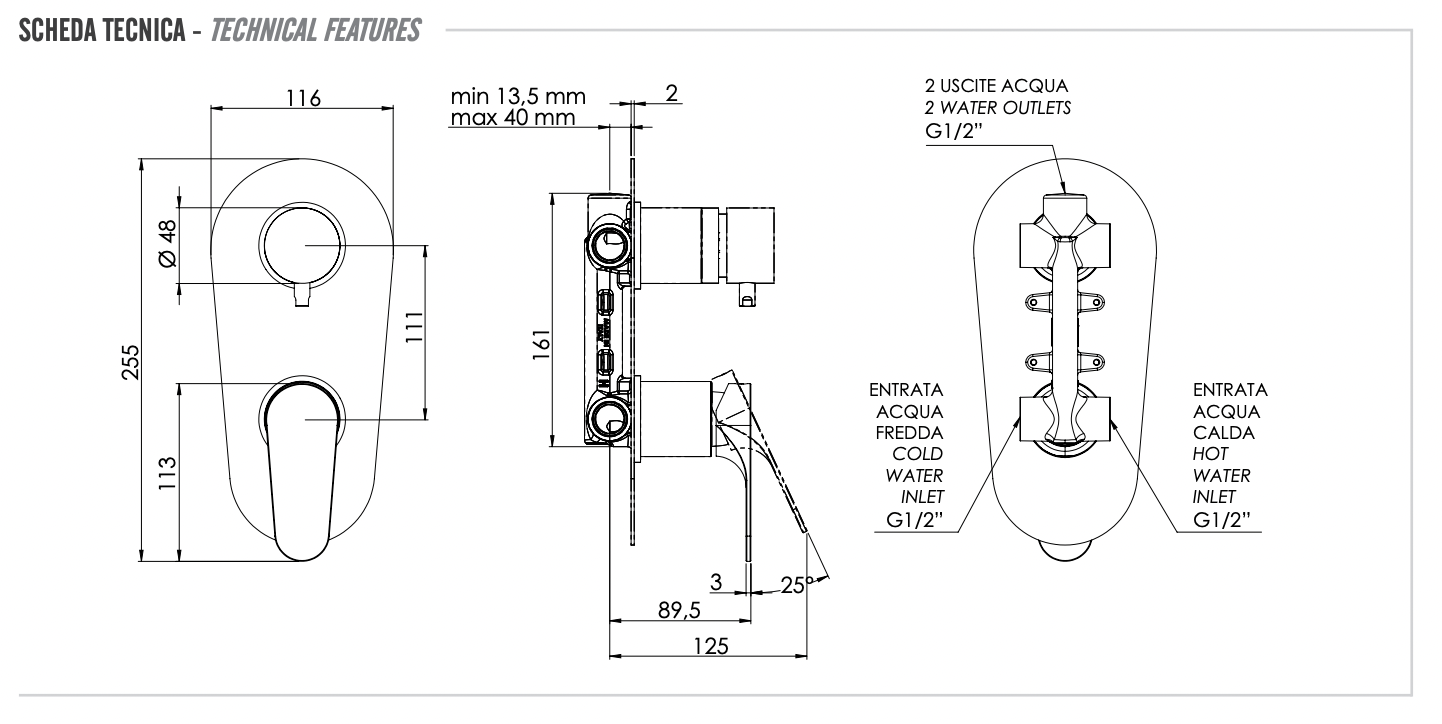Remer Class Line Смеситель для ванны встраиваемый, 2 потребителя, с встраиваемой частью, цвет: cromo L92 и другие сантехнические изделия бренда характеризует надежность, высокое качество и продолжительный срок службы. Изделие в стилистике неоклассика впечатляюще будет смотреться в различных цветовых решениях помещения.