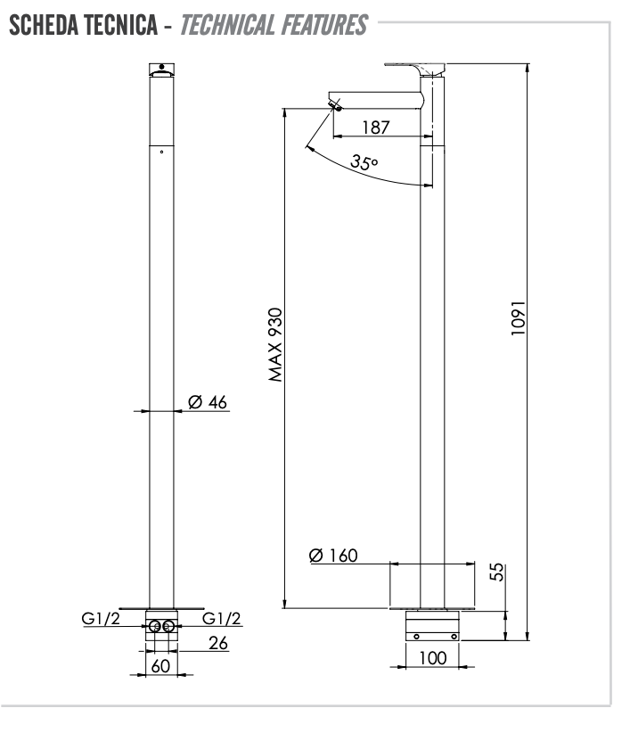 Remer Class Line Смеситель для раковины напольный, д/к, излив 18,7 см, цвет: cromo L18 и другие сантехнические изделия бренда характеризует надежность, высокое качество и продолжительный срок службы. Изделие в стилистике лофт впечатляюще будет смотреться в различных цветовых решениях помещения.