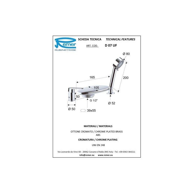 Закажите Remer Dream Смеситель на борт ванны, каскадный излив, лейка 3 вида струи, шланг 150 см, цвет: cromo D07UF от производителя Remer, коллекция Dream в салоне европейской сантехники Дизайн Сантехники с быстрой доставкой по Москве. Представлены подробные характеристики и фотографии, которые позволят сделать правильный выбор и заказать товар.