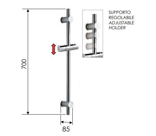 Remer Душевая штанга 70 см, цвет: cromo nero spazzolato 317GCFP и другие сантехнические изделия бренда характеризует надежность, высокое качество и продолжительный срок службы. Изделие в стилистике минимализм впечатляюще будет смотреться в различных цветовых решениях помещения.