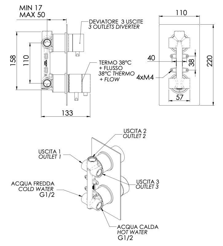 Remer Edge Термостат для ванны встраиваемый на 3 потребителя, с встраиваемой частью, цвет: cromo EG593 и другие сантехнические изделия бренда характеризует надежность, высокое качество и продолжительный срок службы. Изделие в стилистике неоклассика впечатляюще будет смотреться в различных цветовых решениях помещения.