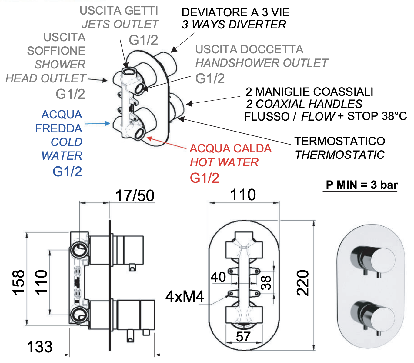 Remer Elegance Термостат для ванны встраиваемый, 3 потребителя, цвет: oro spazzolato NT93BG и другие сантехнические изделия бренда характеризует надежность, высокое качество и продолжительный срок службы. Изделие в стилистике неоклассика впечатляюще будет смотреться в различных цветовых решениях помещения.
