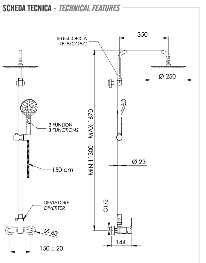 Remer Energy Душевая стойка: смеситель, верхний душ 25 см, лейка, штанга 167 см, шланг, цвет: cromo EY37A8MPUFM25G и другие сантехнические изделия бренда характеризует надежность, высокое качество и продолжительный срок службы. Изделие в стилистике минимализм впечатляюще будет смотреться в различных цветовых решениях помещения.