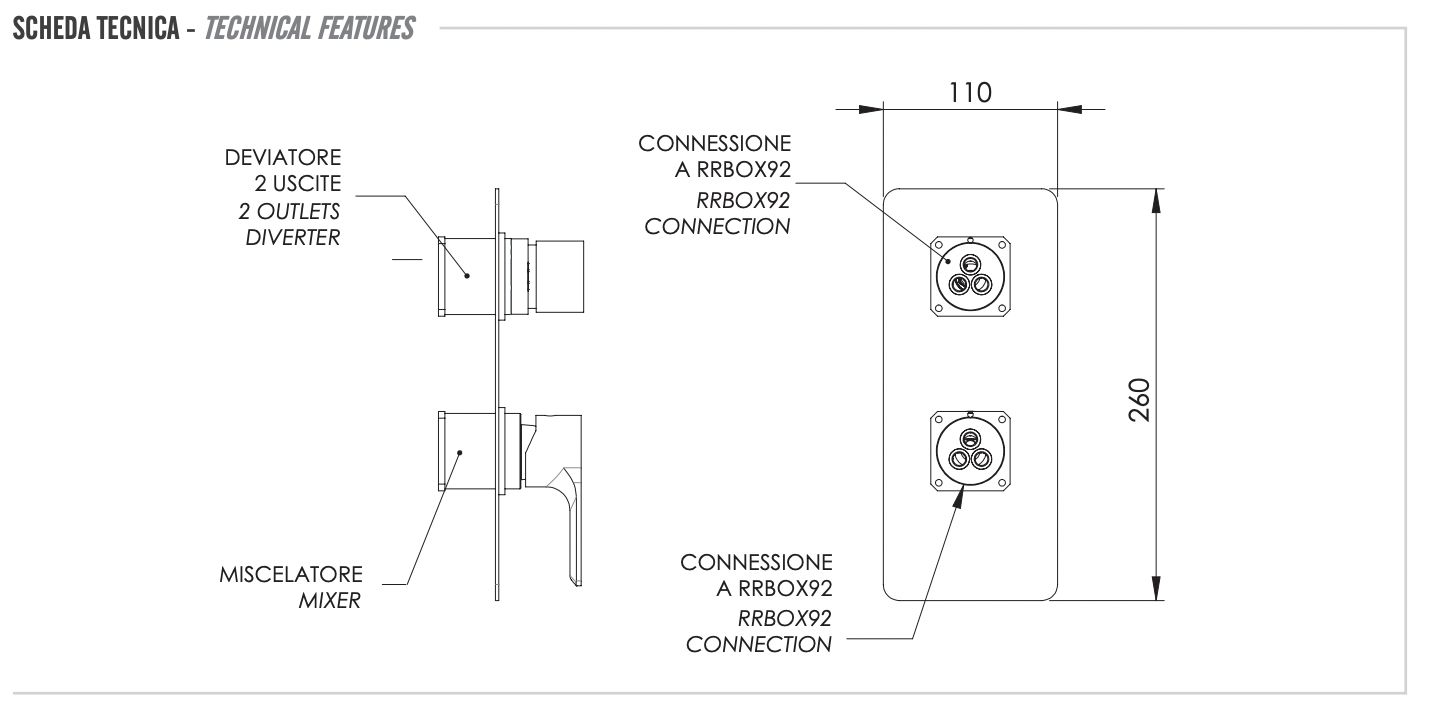 Remer Energy Смеситель для ванны встраиваемый, 2 потребителя, цвет: nichel spazzolato opaco EY92KBNPO и другие сантехнические изделия бренда характеризует надежность, высокое качество и продолжительный срок службы. Изделие в стилистике неоклассика впечатляюще будет смотреться в различных цветовых решениях помещения.