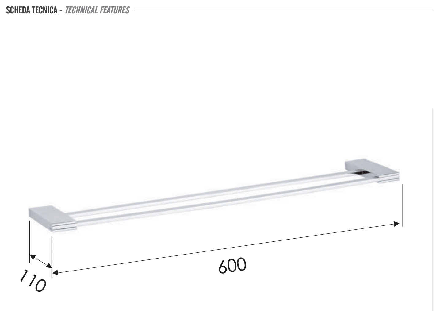 Remer Flat Полотенцедержатель двойной 60 см, подвесной, латунь, цвет: cromo FT33CR и другие сантехнические изделия бренда характеризует надежность, высокое качество и продолжительный срок службы. Изделие в стилистике арт-деко впечатляюще будет смотреться в различных цветовых решениях помещения.