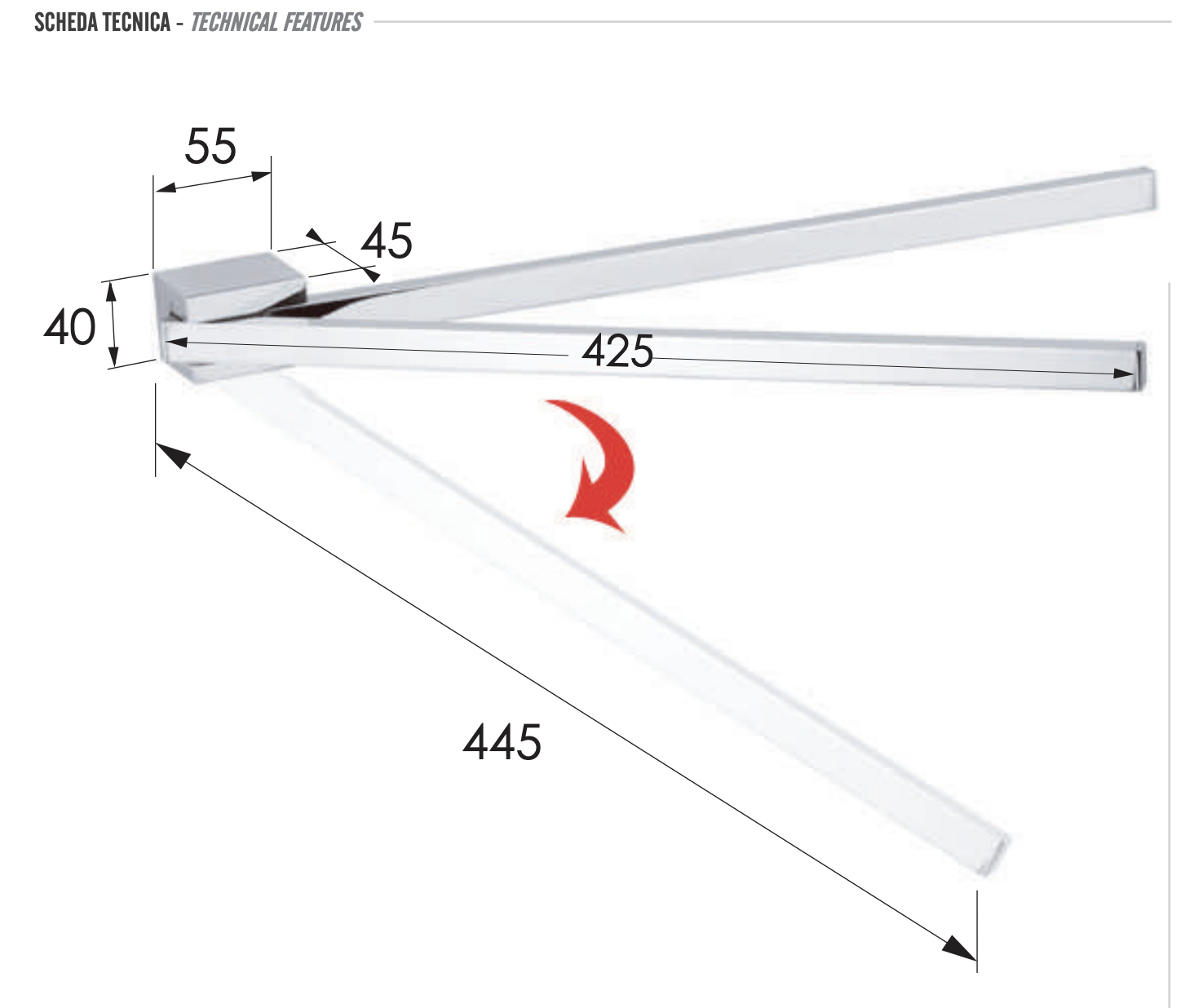 Remer Flat Полотенцедержатель двойной поворотный 44,5 см, подвесной, латунь, цвет: cromo FT36CR и другие сантехнические изделия бренда характеризует надежность, высокое качество и продолжительный срок службы. Изделие в стилистике арт-деко впечатляюще будет смотреться в различных цветовых решениях помещения.