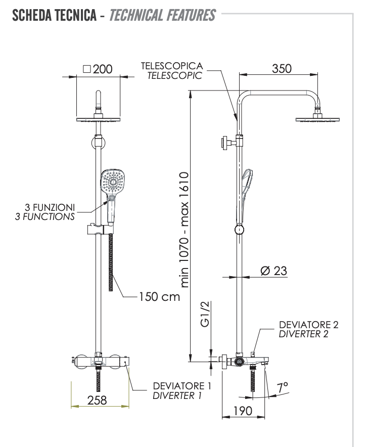 Душевая стойка Remer Infinity I34A8CPAD20 - это итальянское качество и стиль, которые гарантированно превратят вашу ванную комнату в оазис комфорта. Стойка имеет хромированное глянцевое покрытие и округлую форму, что придает ей элегантный вид. Изготовлена стойка из латуни, что гарантирует ее надежность и долговечность. В комплект входит смеситель с керамическим картриджем для более плавного управления водой, верхний душ диаметром 20 см, лейка, телескопическая штанга длиной 161 см, ручной душ и шланг. Гарантия на изделие - 5 лет. Позвольте себе роскошь и удобство с душевой стойкой Remer Infinity I34A8CPAD20.