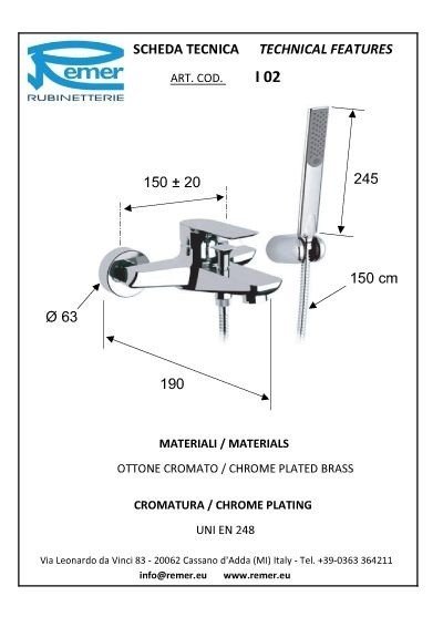 Remer Infinity Смеситель для ванны с душем, лейка, держатель, шланг 150 см, цвет: nichel spazzolato I02NP и другие сантехнические изделия бренда характеризует надежность, высокое качество и продолжительный срок службы. Изделие в стилистике неоклассика впечатляюще будет смотреться в различных цветовых решениях помещения.