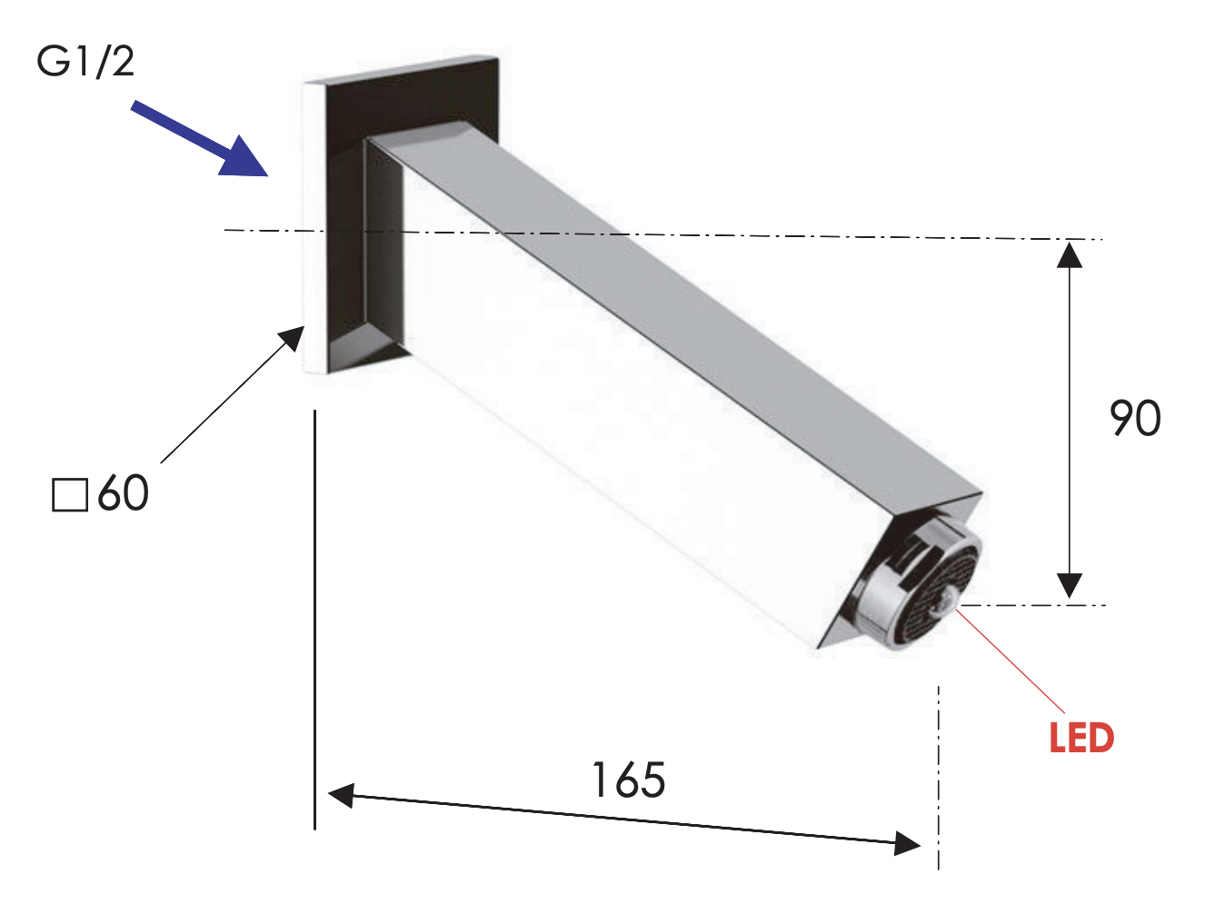 Remer Излив настенный 16,5 см с подсветкой, цвет: cromo 91QRD и другие сантехнические изделия бренда характеризует надежность, высокое качество и продолжительный срок службы. Изделие в стилистике минимализм впечатляюще будет смотреться в различных цветовых решениях помещения.