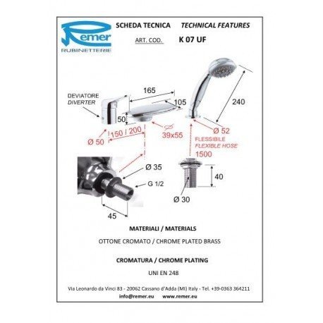 Remer Kiss Смеситель на борт ванны, каскадный излив, шланг 150 см, цвет: cromo K07UF и другие сантехнические изделия бренда характеризует надежность, высокое качество и продолжительный срок службы. Изделие в стилистике минимализм впечатляюще будет смотреться в различных цветовых решениях помещения.