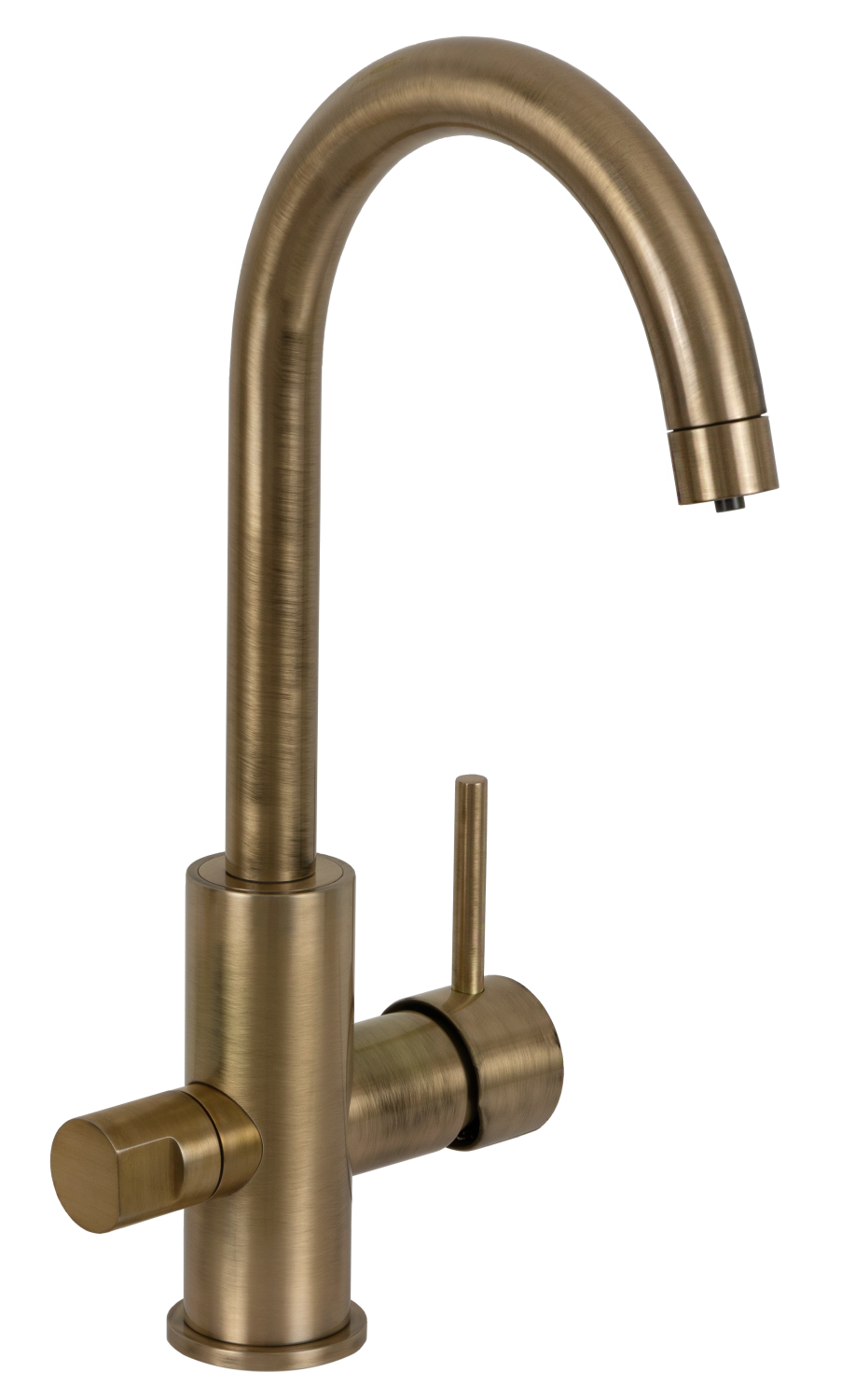 Remer Смеситель для кухни, с независимым каналом для питьевой воды, цвет: vecchio ottone N792DWVO и другие сантехнические изделия бренда характеризует надежность, высокое качество и продолжительный срок службы. Изделие в стилистике лофт впечатляюще будет смотреться в различных цветовых решениях помещения.