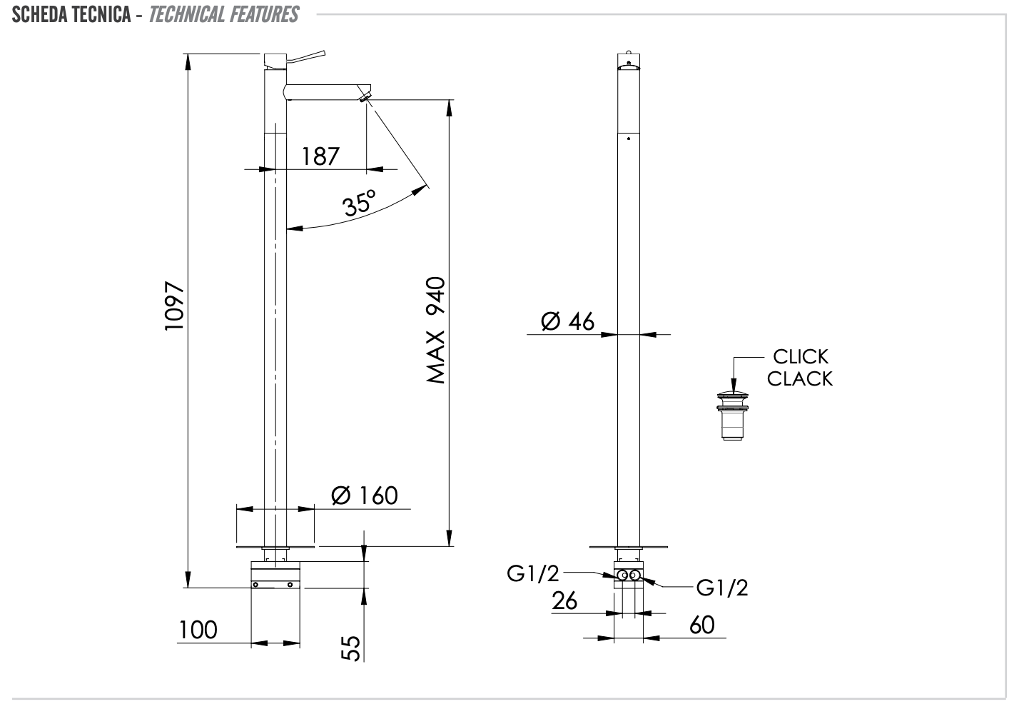 Remer Minimal Смеситель для раковины напольный, д/к, излив 18,7 см, цвет: cromo N18 и другие сантехнические изделия бренда характеризует надежность, высокое качество и продолжительный срок службы. Изделие в стилистике лофт впечатляюще будет смотреться в различных цветовых решениях помещения.