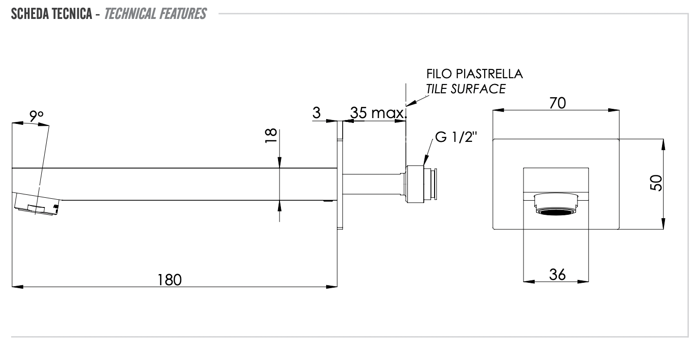 Remer Qubika Излив настенный 18 см, цвет: cromo nero spazzolato 91QCFP и другие сантехнические изделия бренда характеризует надежность, высокое качество и продолжительный срок службы. Изделие в стилистике минимализм впечатляюще будет смотреться в различных цветовых решениях помещения.